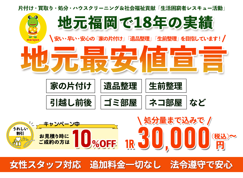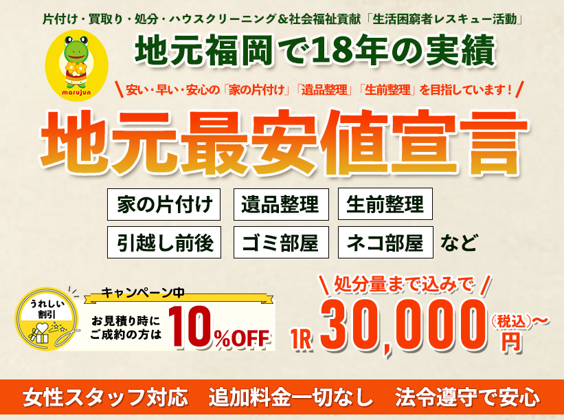ゴミ部屋まるごと片付け/福岡/女性スタッフ/マルジュン