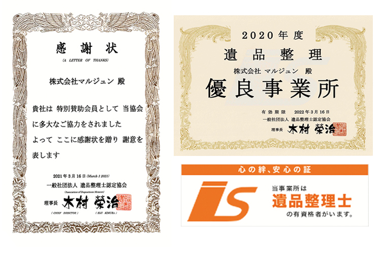 遺品整理士による丁寧な対応を行っています。お探しの品物捜索や遺品の買取もご相談ください。