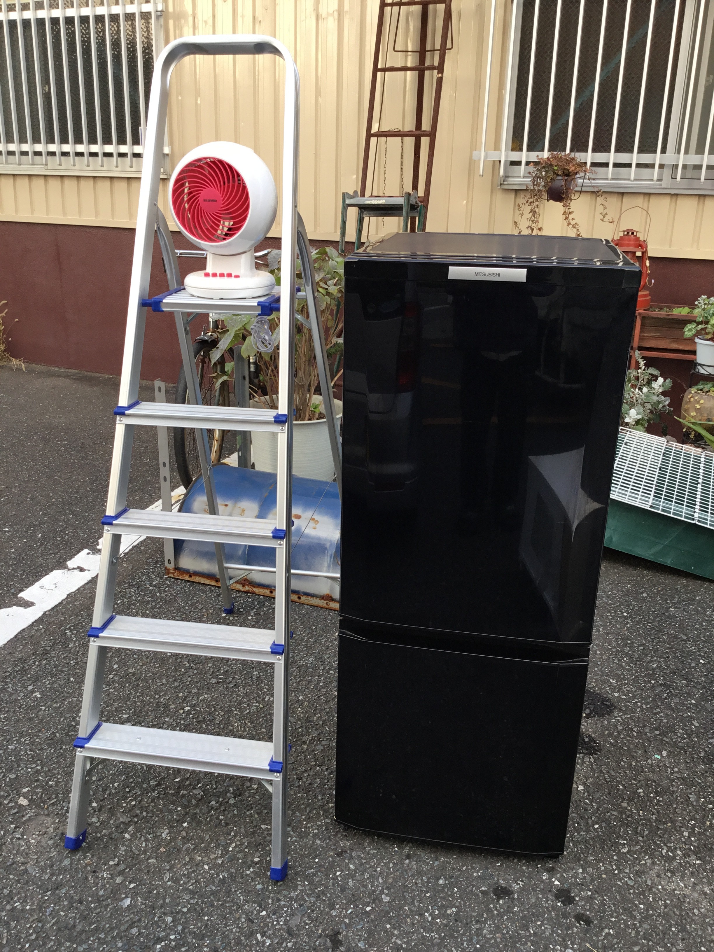 ★引越しの後の片づけと処分の依頼の際に買取させていただきました! ①三菱2D冷蔵庫 2013年製 ②アイリスオーヤマ サーキュレーター 2014年製 ③状態が良い脚立 ありがとうございました🎶 FacebookX