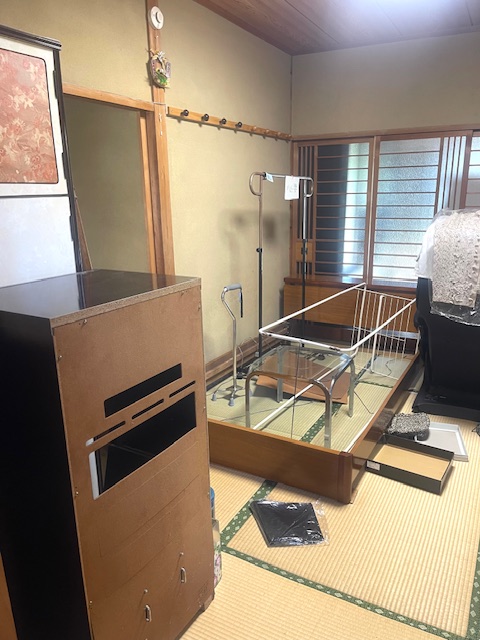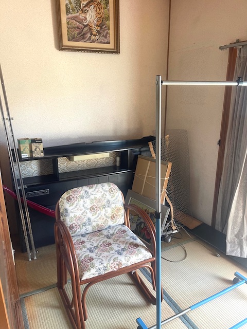 作業:➊現状からのお片づけ➋不用品・家財・家電・ゴミの処分➌搬出後に全体簡易清掃➍買取り(着物・置物・花台)