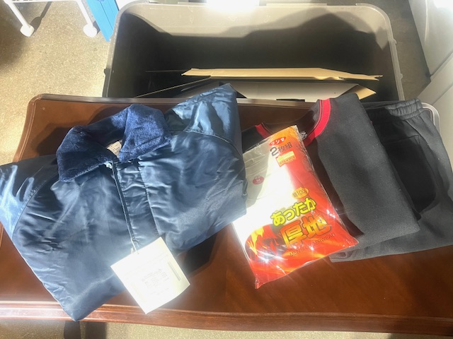 【新品未使用】暖か肌着・スエット上下・防寒ジャンパーを無償で提供しました。✌