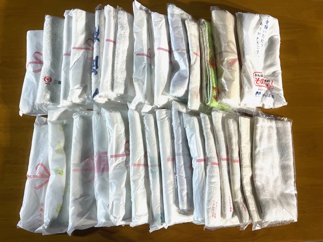 【新品未使用品】➊暖か肌着6点➋靴下34点➌上着10点➍ズボン8点❺タオル30点❻テレフォンカード25点を無償で提供しました。