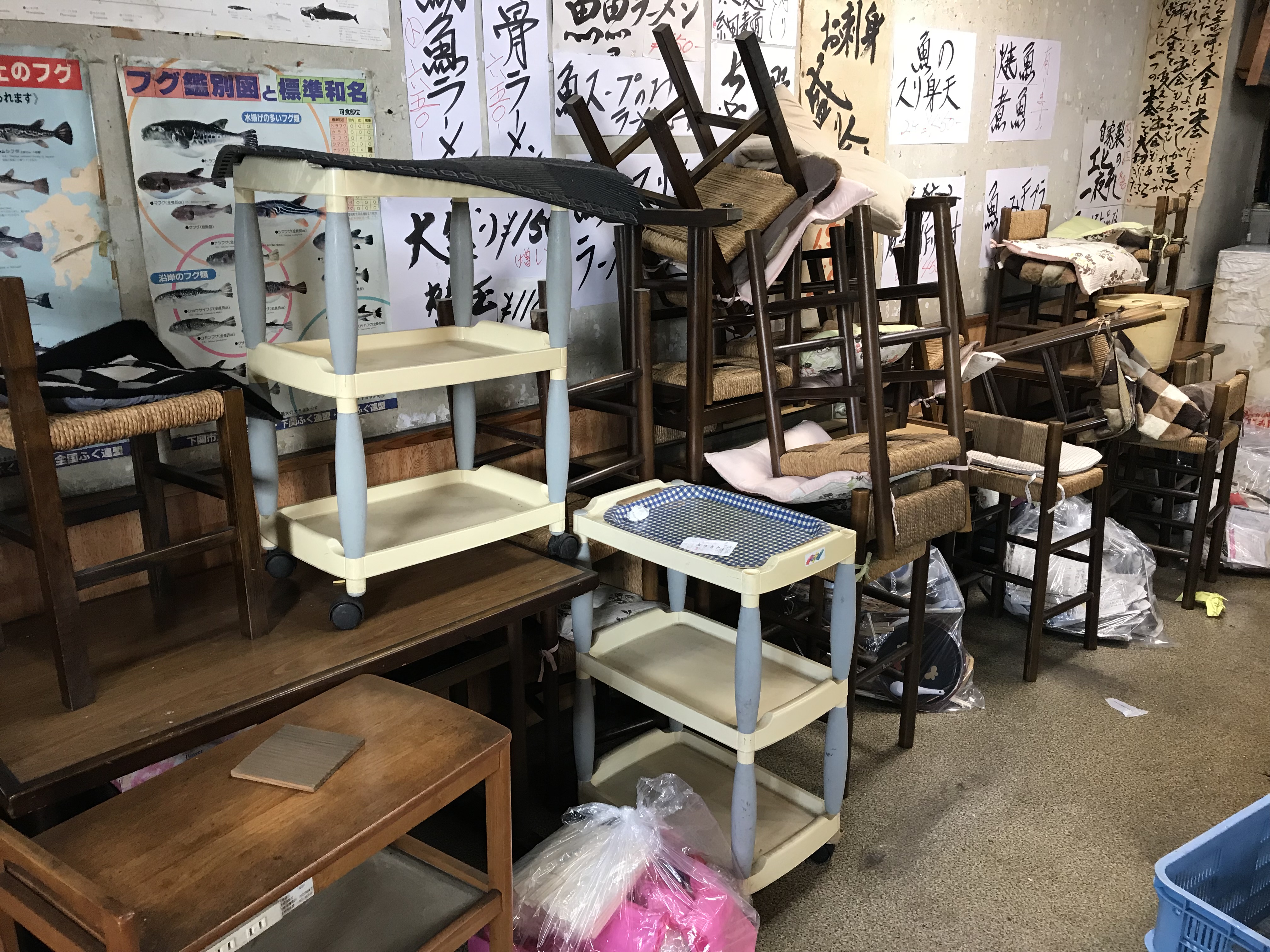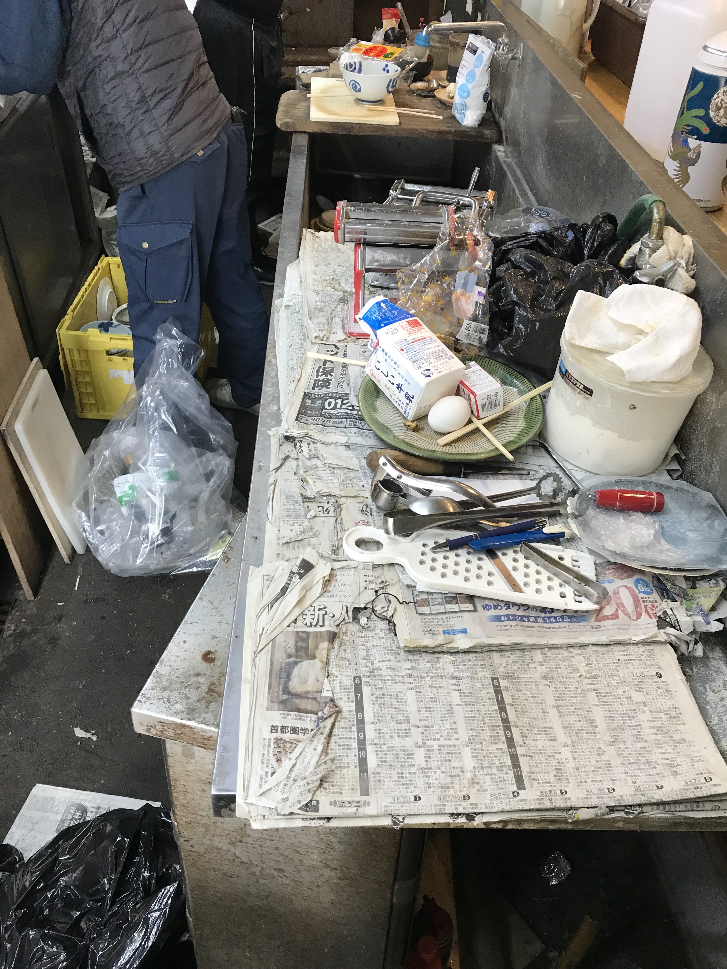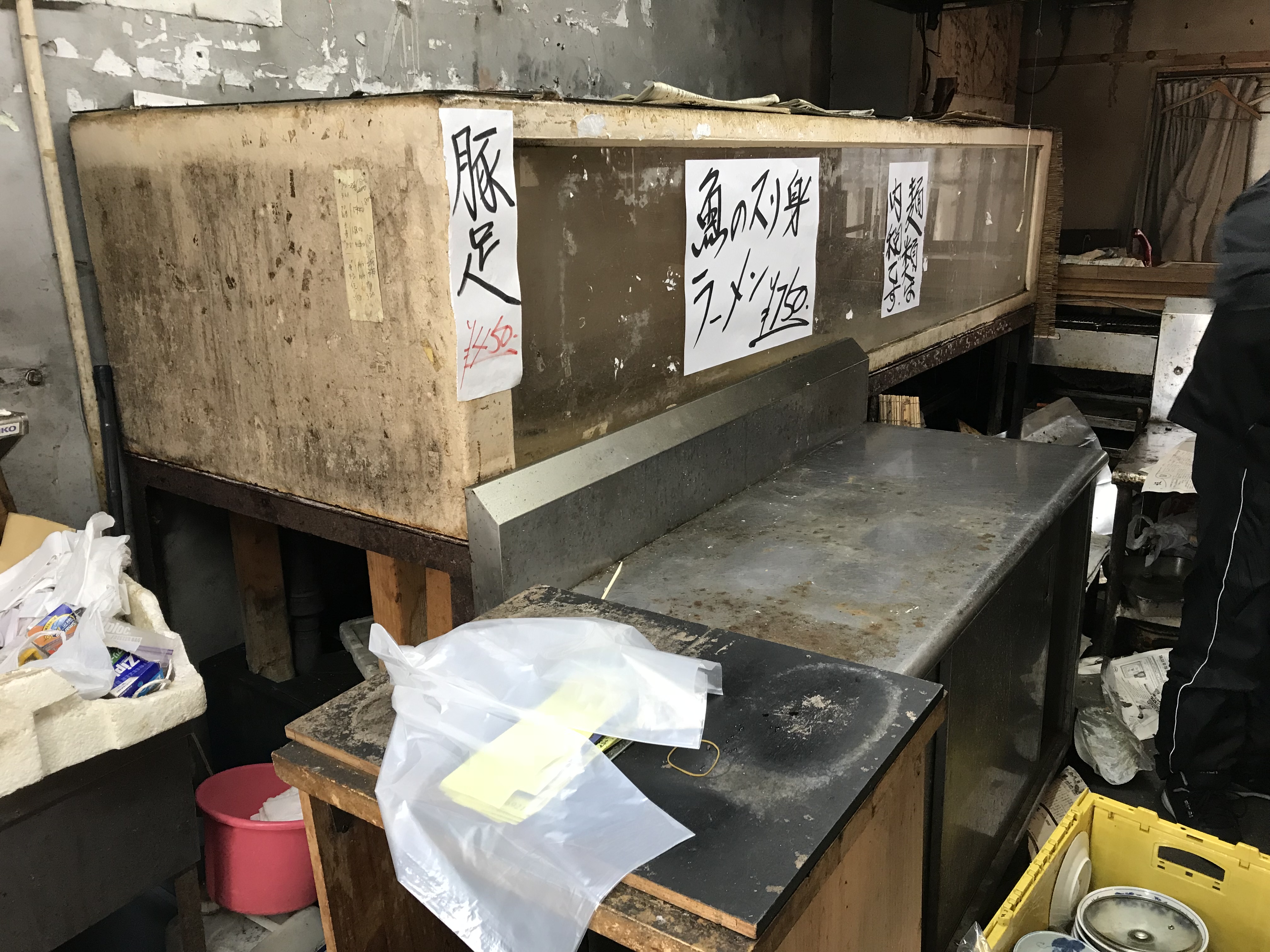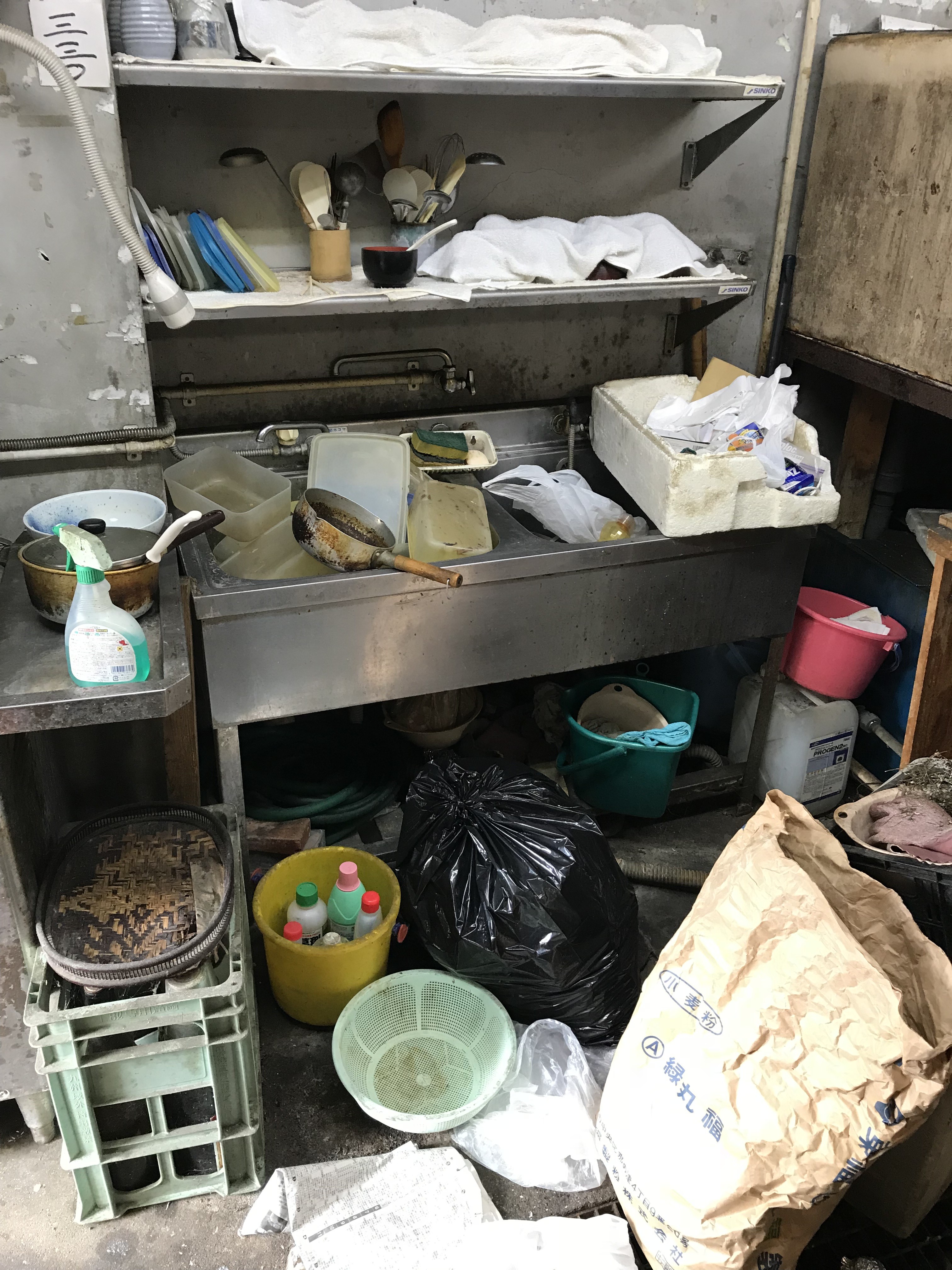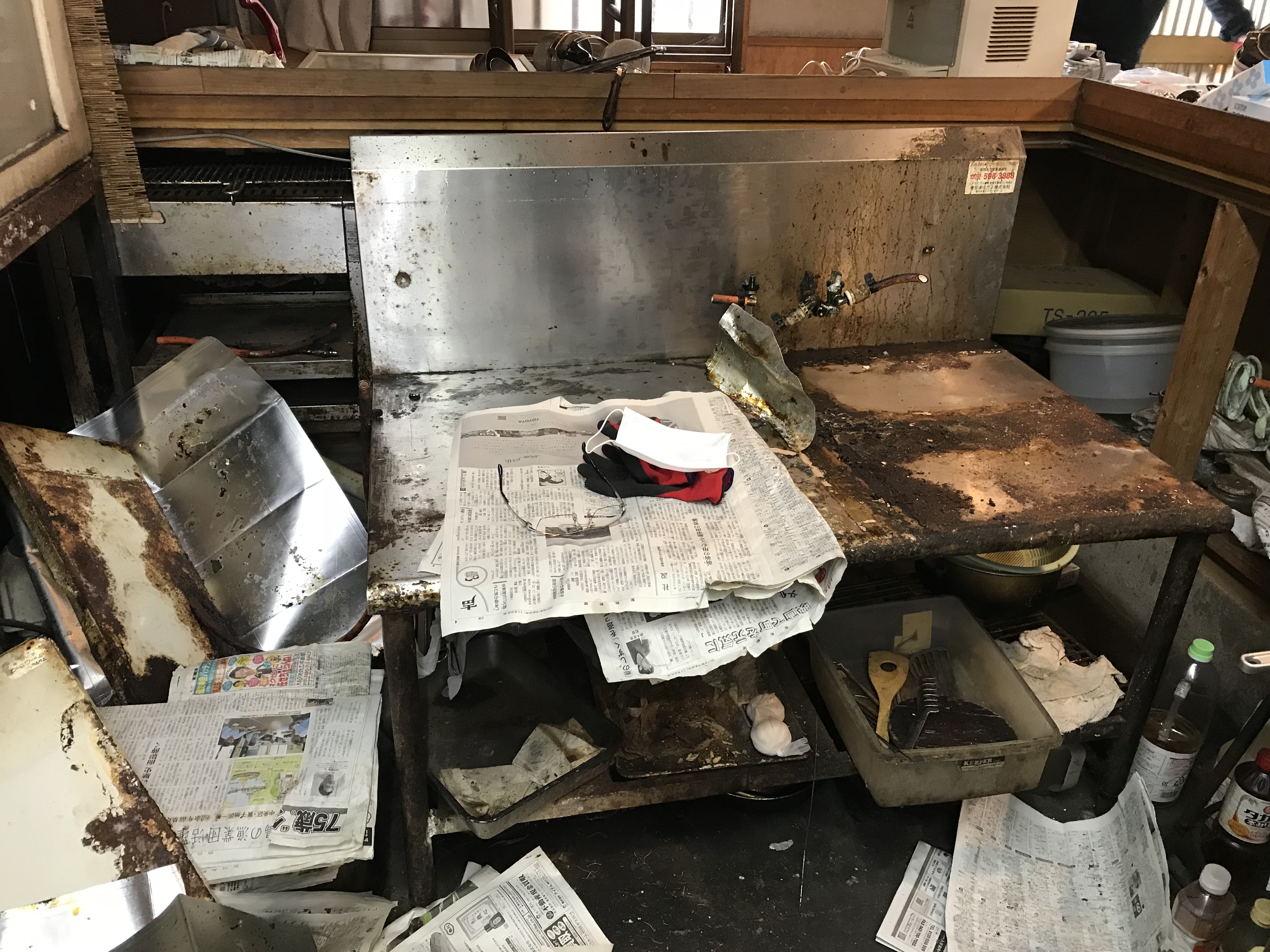 【状態】👉もう長い間営業されていないという事で店内は散らかってて悪臭がしていました。厨房機器は凄い汚れで再利用できるモノは一切ありませんでした。